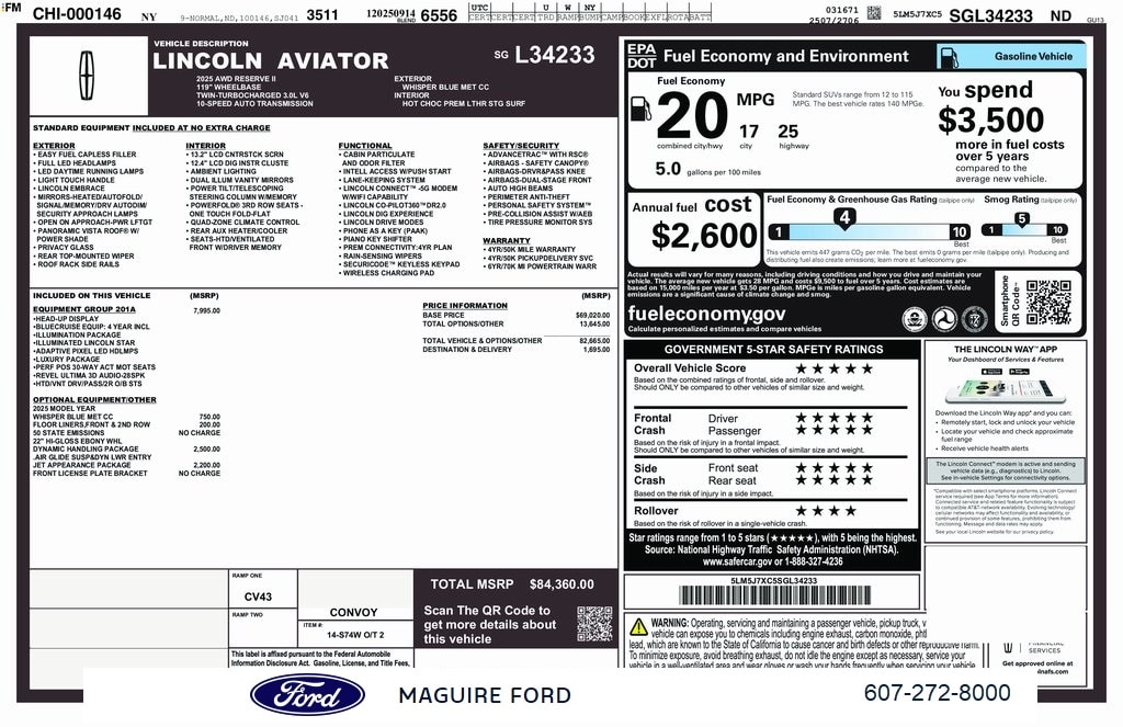 New 2025 LincolnAviator Reserve SUV V-6 cyl